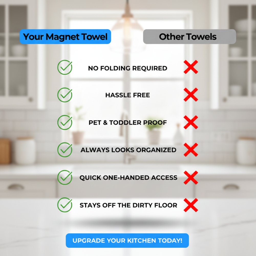 Stop picking your towel up off the floor. - Traditional kitchen towels are a constant chore—they slip, they bunch, and they never stay folded. LivanoGoods Magnetic Kitchen Towels change the game. Featuring an ultra-durable magnet, these premium cotton towels snap instantly to your oven, fridge, or grill and stay there.